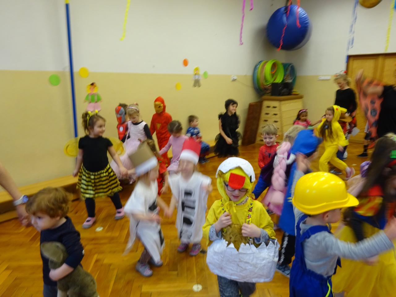 Dnes byl ve školce Karneval. Děti přišly do školky v krásných, originálních maskách. Ve vyzdobené tělocvičně si děti z obou oddělení zatancovaly, zazpívaly a také zasoutěžily. Mezi tancováním a soutěžením nám paní kuchařka přichystala občerstvení.