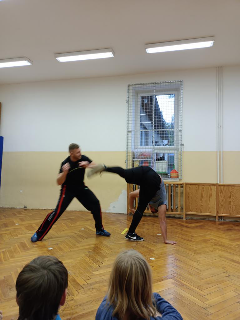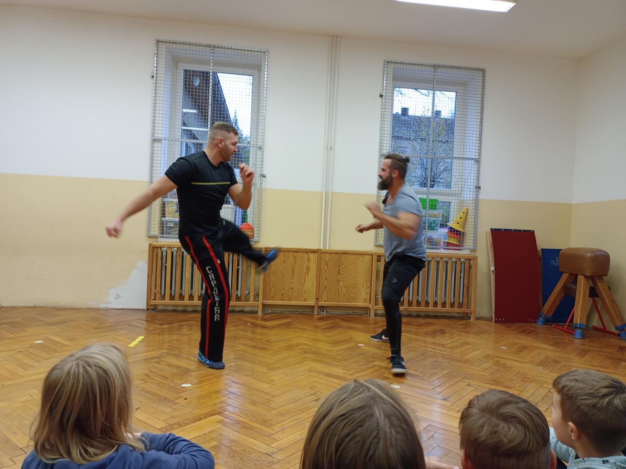 Ve středu 15.listopadu navštívili školní družinu pan Slávek Plachetka a pan Jiří Šubrt. Předvedli dětem ukázku Capoeiry, jedná se o afro-brazilské bojové umění, které osahuje prvky akrobacie a tance doprovázené hudbou. Děti se dozvěděly, že toto bohové umění sloužilo jako forma sebeobrany.
