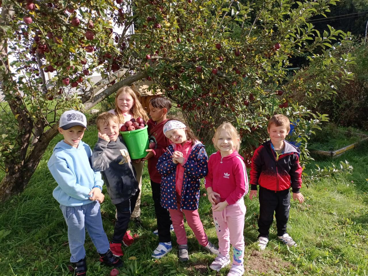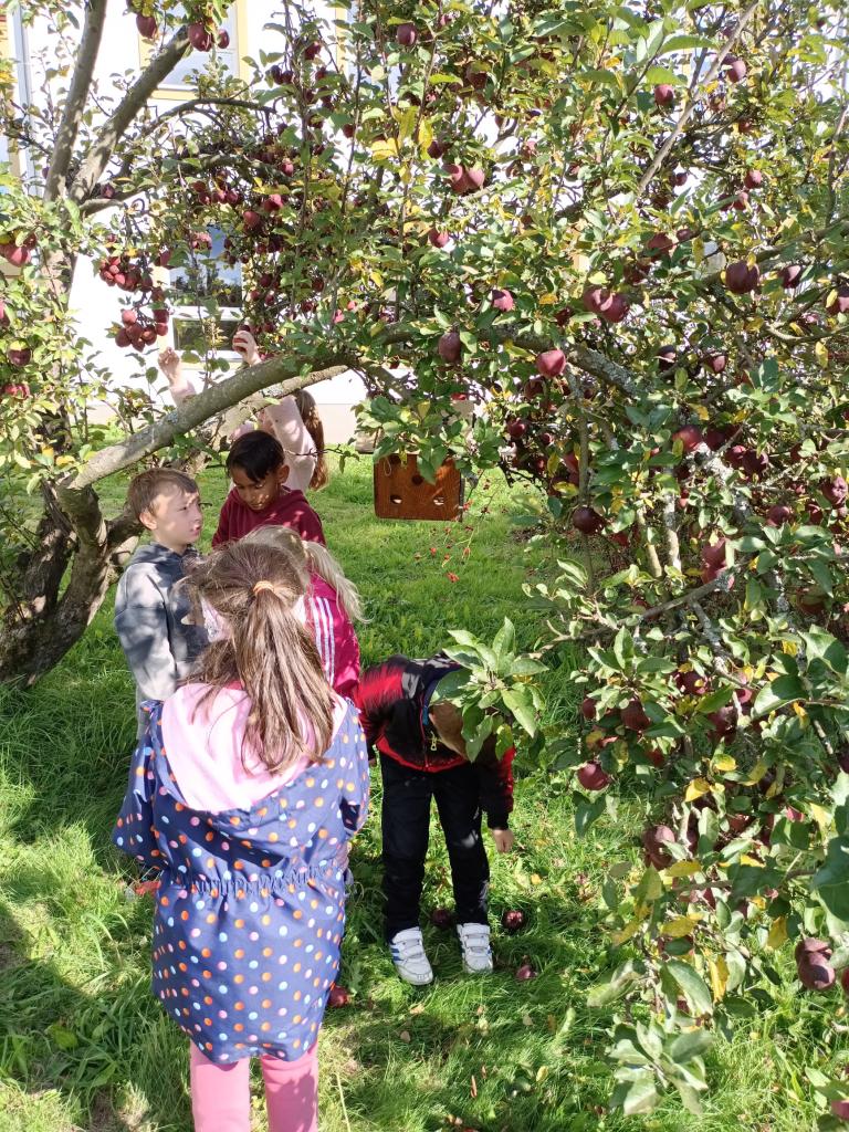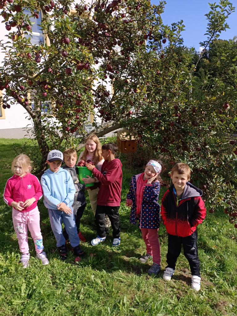 Na školní zahradě se nám letošní rok urodila pěkná jabka,