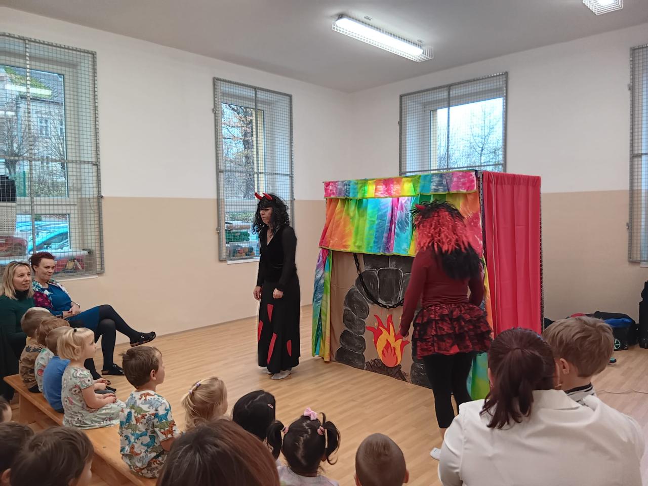 žáci 1. a 2. ročníku, společně s mateřskou školou, shlédli " Čertovské pohádky".