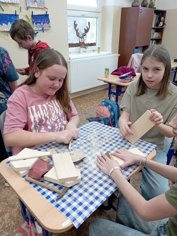 V rámci hodin pracovních činností se žáci 3., 4. a 5. ročníku zapojili do projektu: „Tvoříme ze dřeva.“