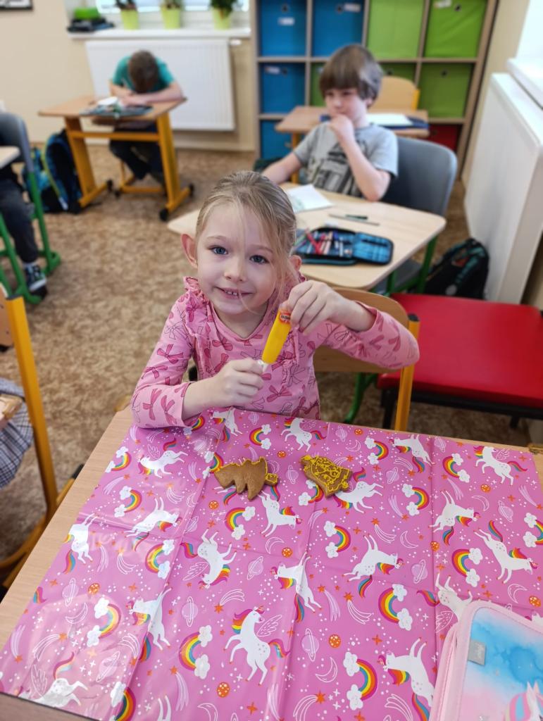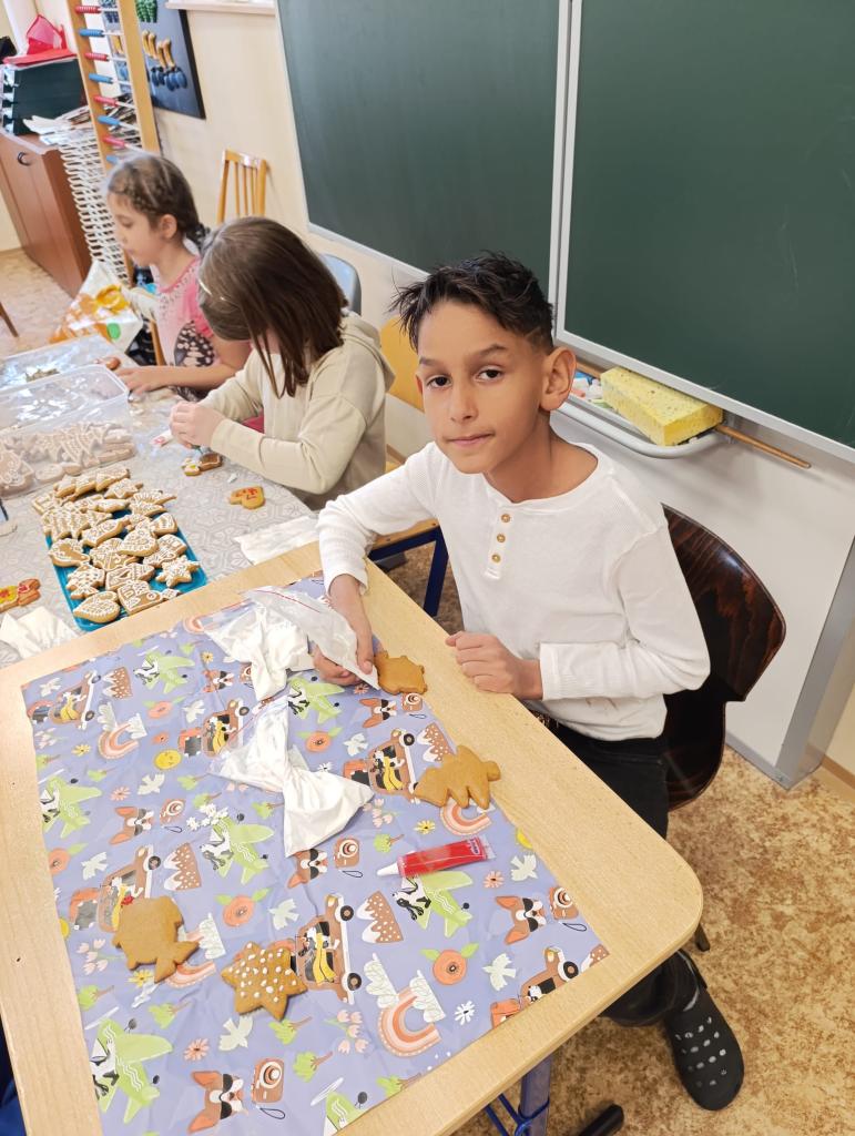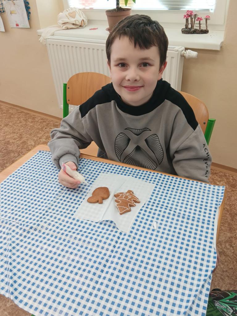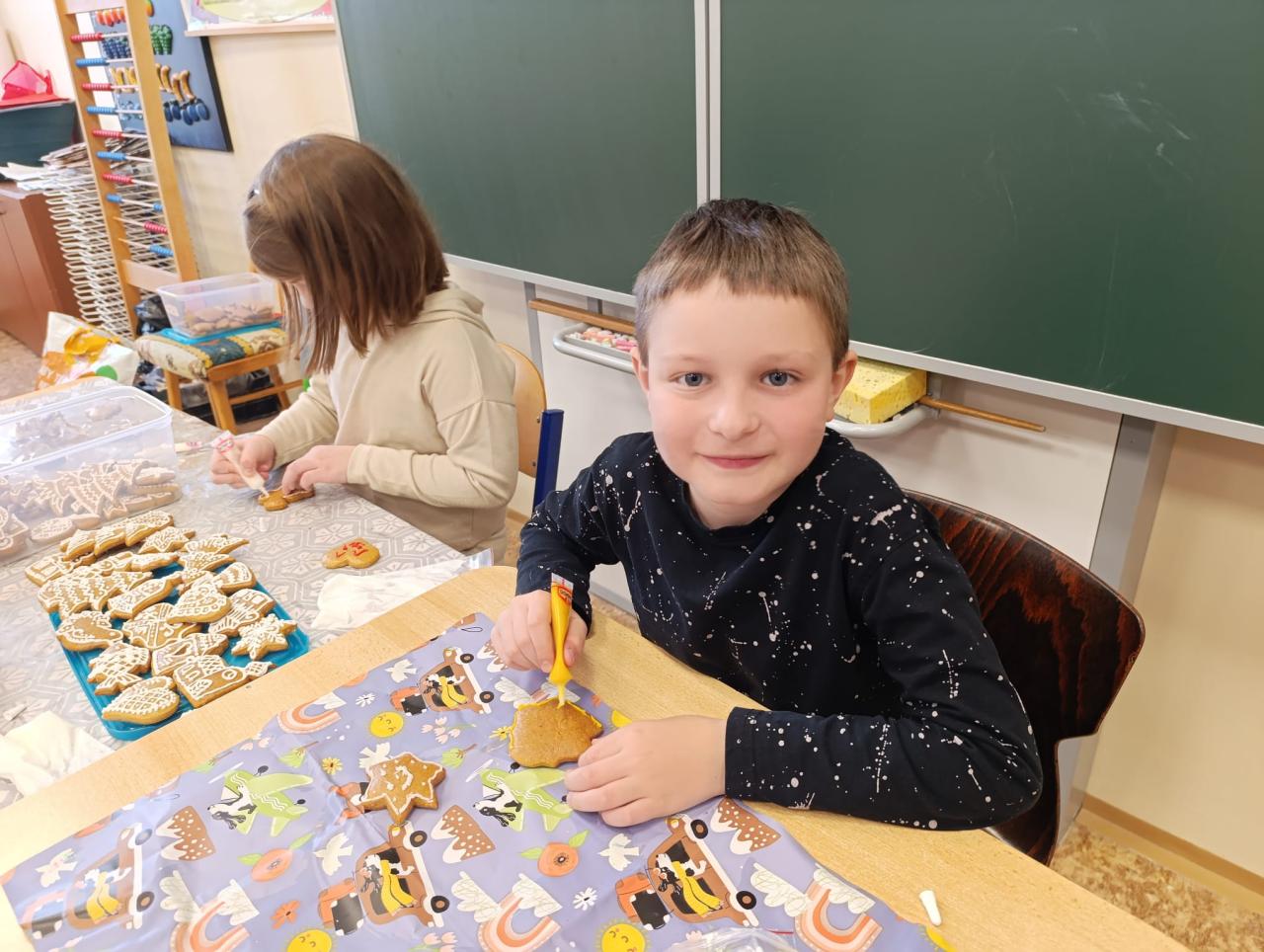 Žáci 1., 2. a 3. ročníku zdobili v rámci pracovních činností vánoční perníčky.